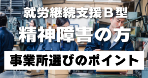 また、就労継続支援B型から一般就労を目指す人は、事業所でサポートをしてもらえるかも、事業所を選んでいくうえで1つの要点になってきます。